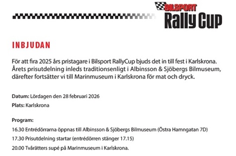 Inbjudan till Lilla Bilsportgalan 28/2 2026.