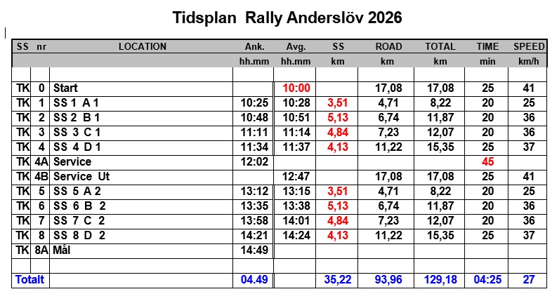 Resultat efter Rally Anderslöv.
